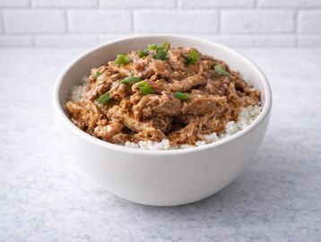 Shredded boneless chicken, smothered in our sweet and buttery brown sauce. Served over steamed white rice.
